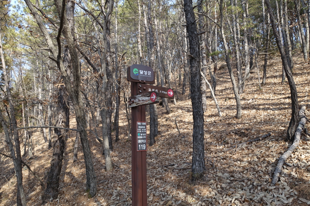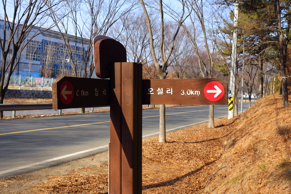 오설리 3km방향으로 산길로 오르며는
