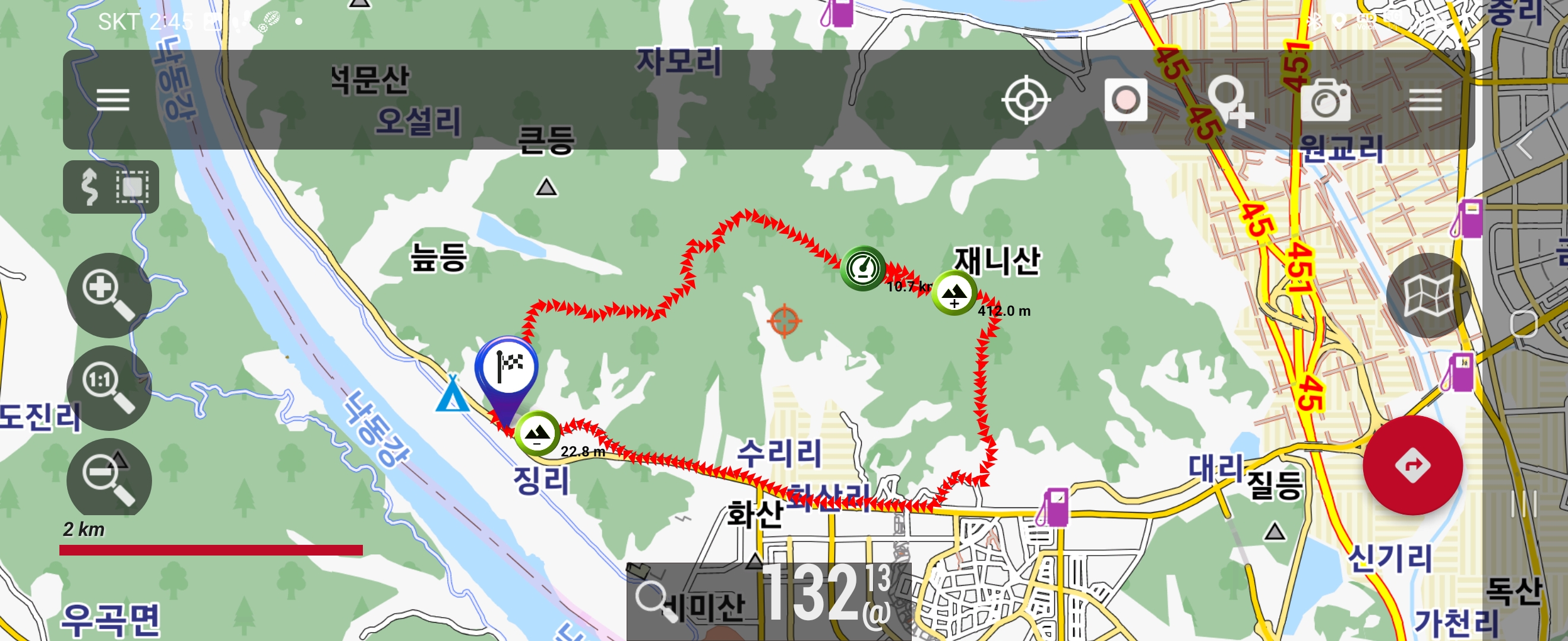 지도에는 왕령지맥은 좌측 아래 임도로 되어있는데 이곳 등고선으로