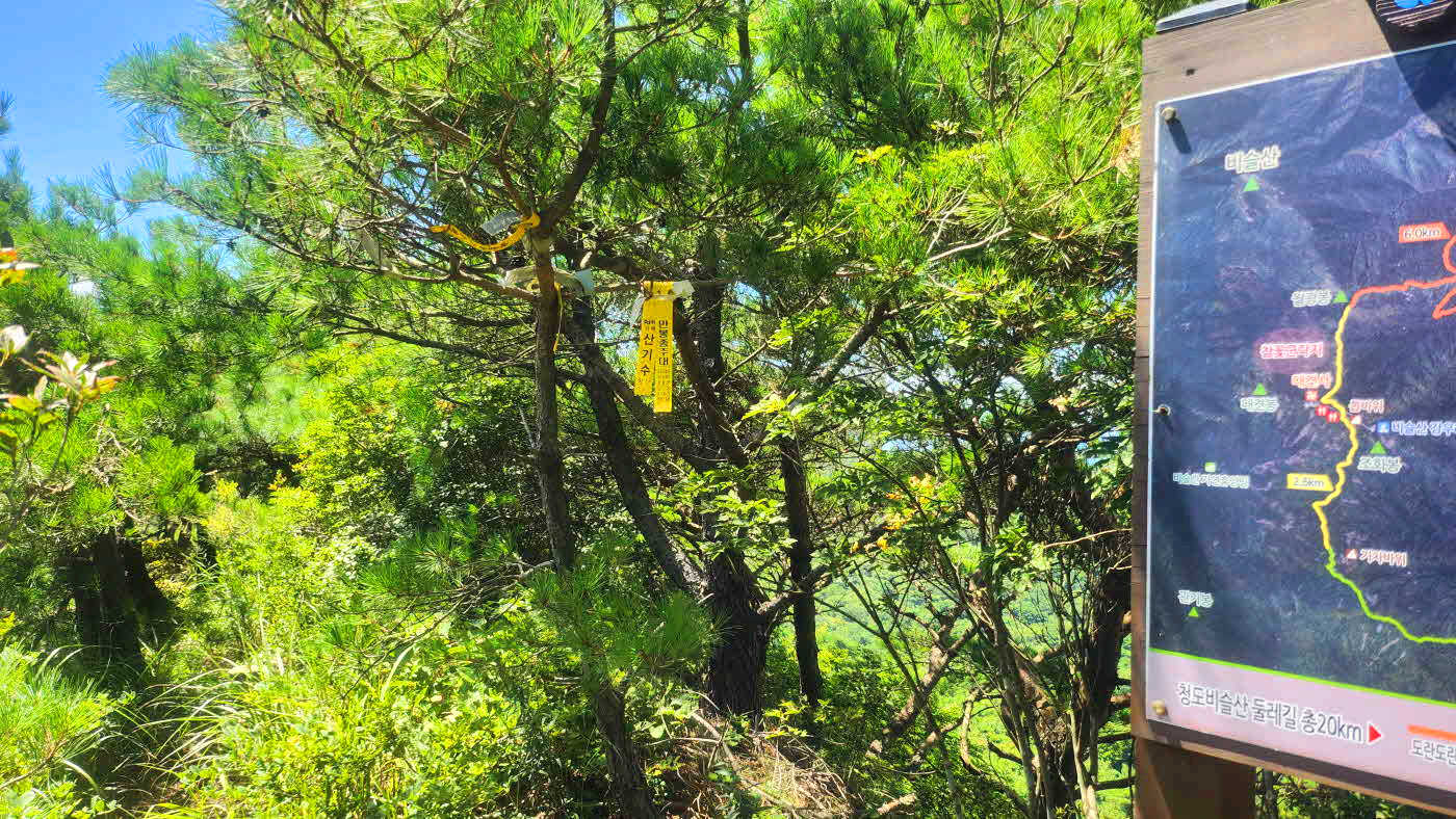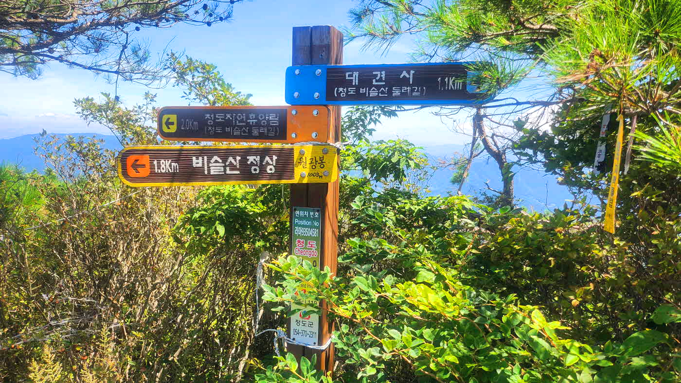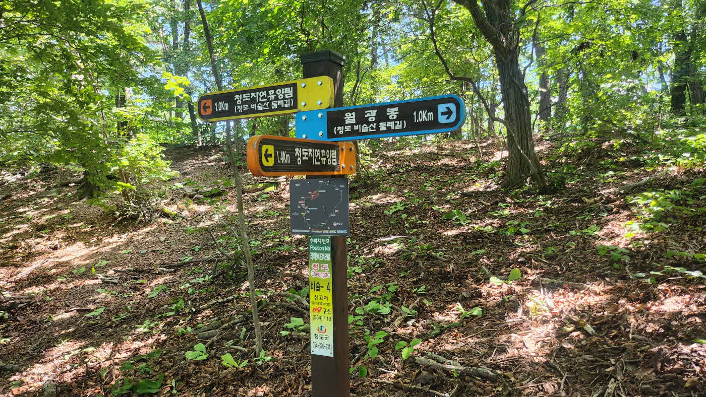 정상에서 점심해결을 하고 청도 자연휴양림 2km 방향으로 하산을 한다.