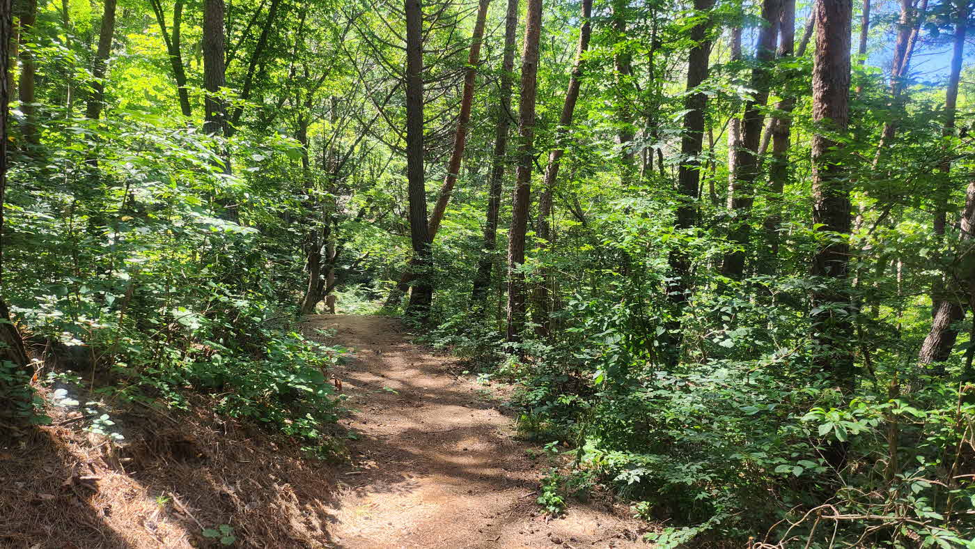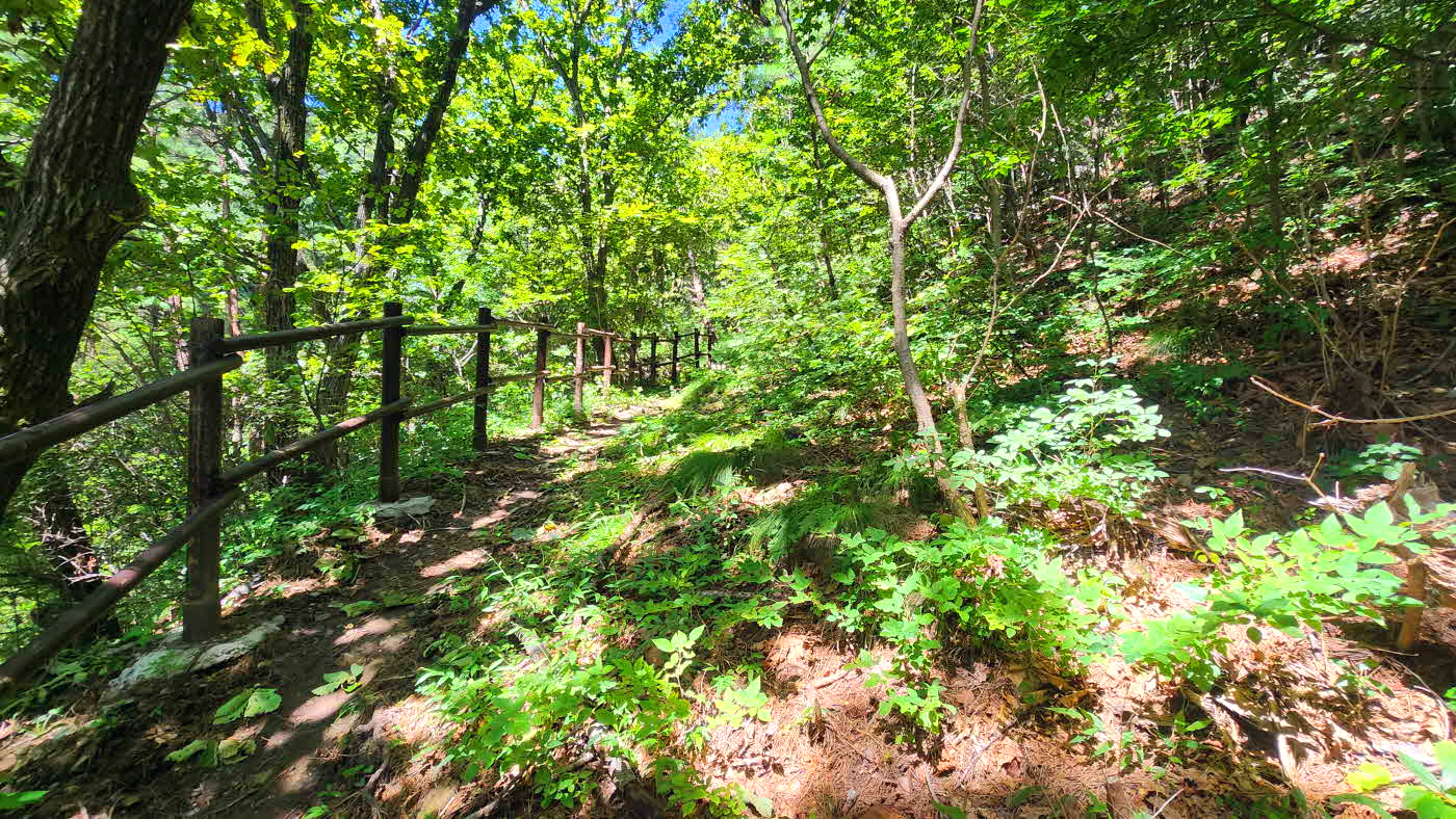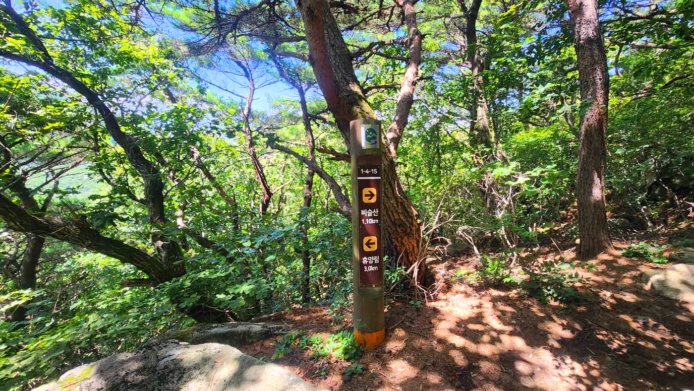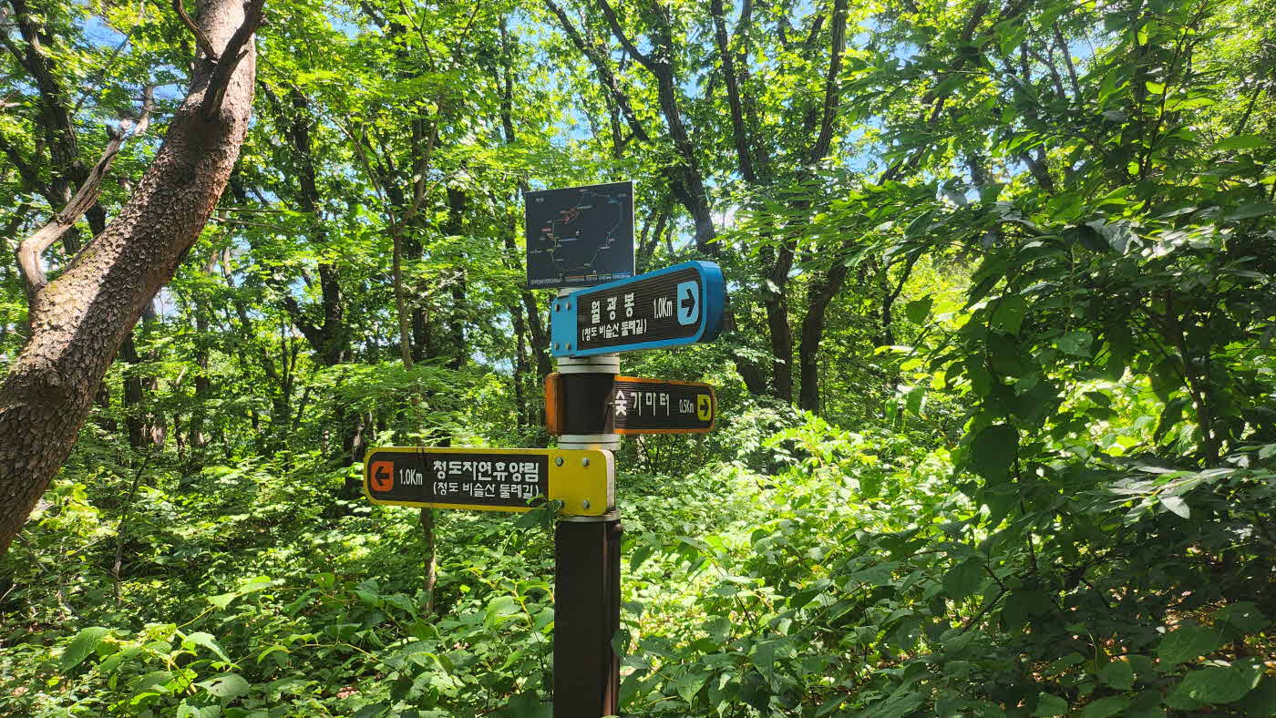 휴양림1km , 월광봉 1km 지점 중간지점이다.