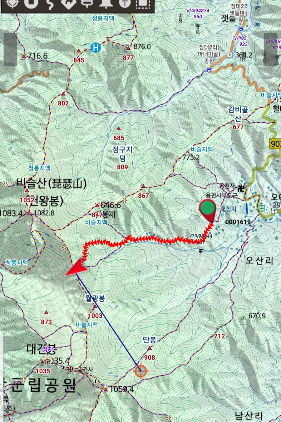 비슬산 주능선 마령재 - 월광봉 - 청도자연 휴양림하산 -도로 - 토담마을 입구