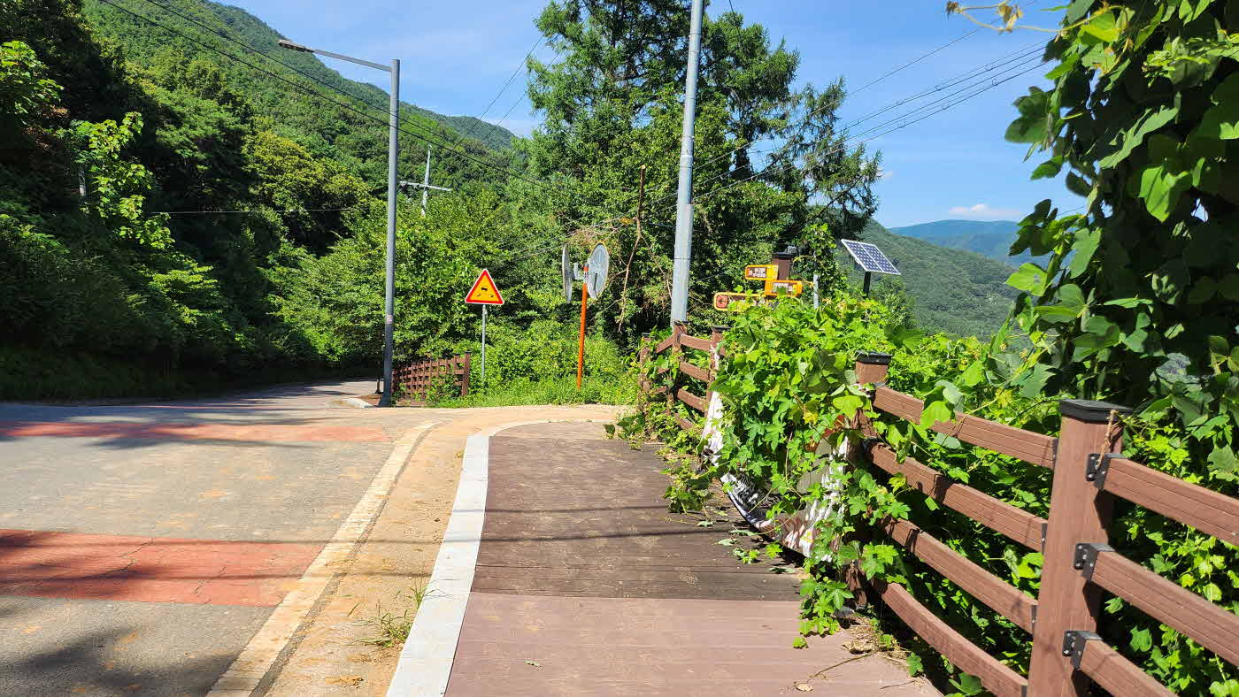 도로변 데크인도을 따라 월광산등산을 시작한다.