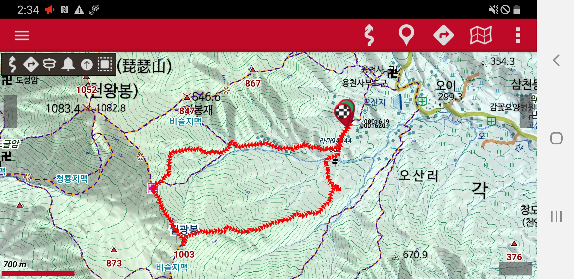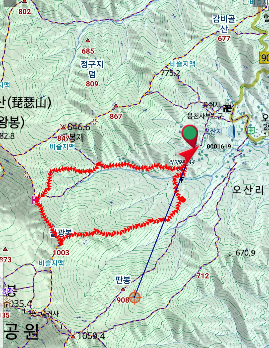 용천사방향 거리글씨는 거리가 안맞는지 지워 놓았다. .