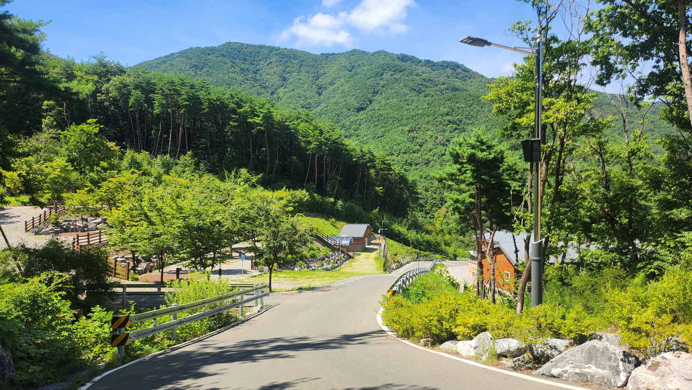 휴양림을 나가 도로따라 차량으로 조금내려가며는
