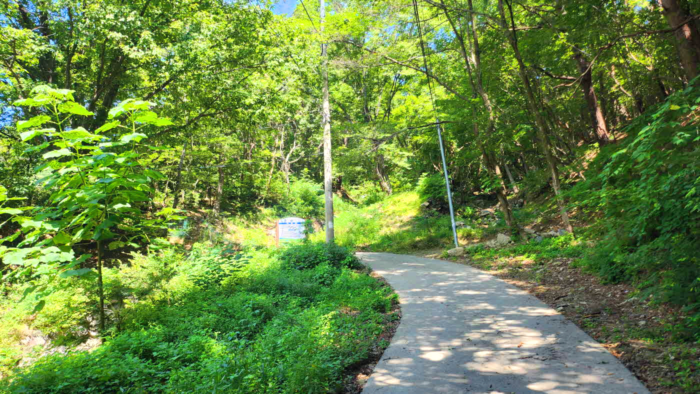 정문을 통과하며는 우측에 휴양림을 한바퀴 돌수있는 산책로