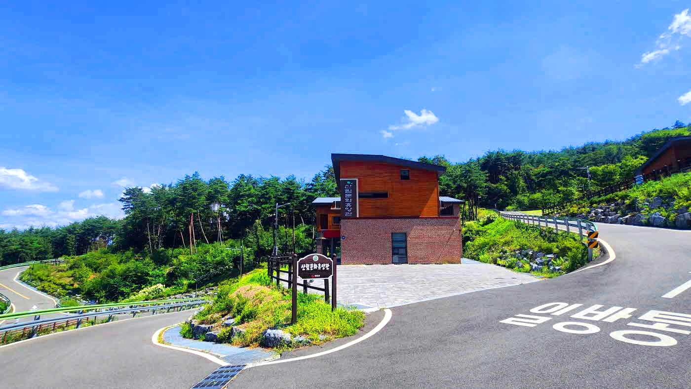 순환도로따라 올라가며는 좌측에 휴양림 주건물 산막들이 자리하고있다.