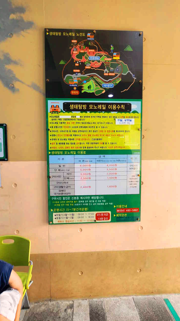 모노레일 탑승시간 약 30분 운영 시간: 09:00 ~ 17:00 (하절기 기준, 5분 간격)