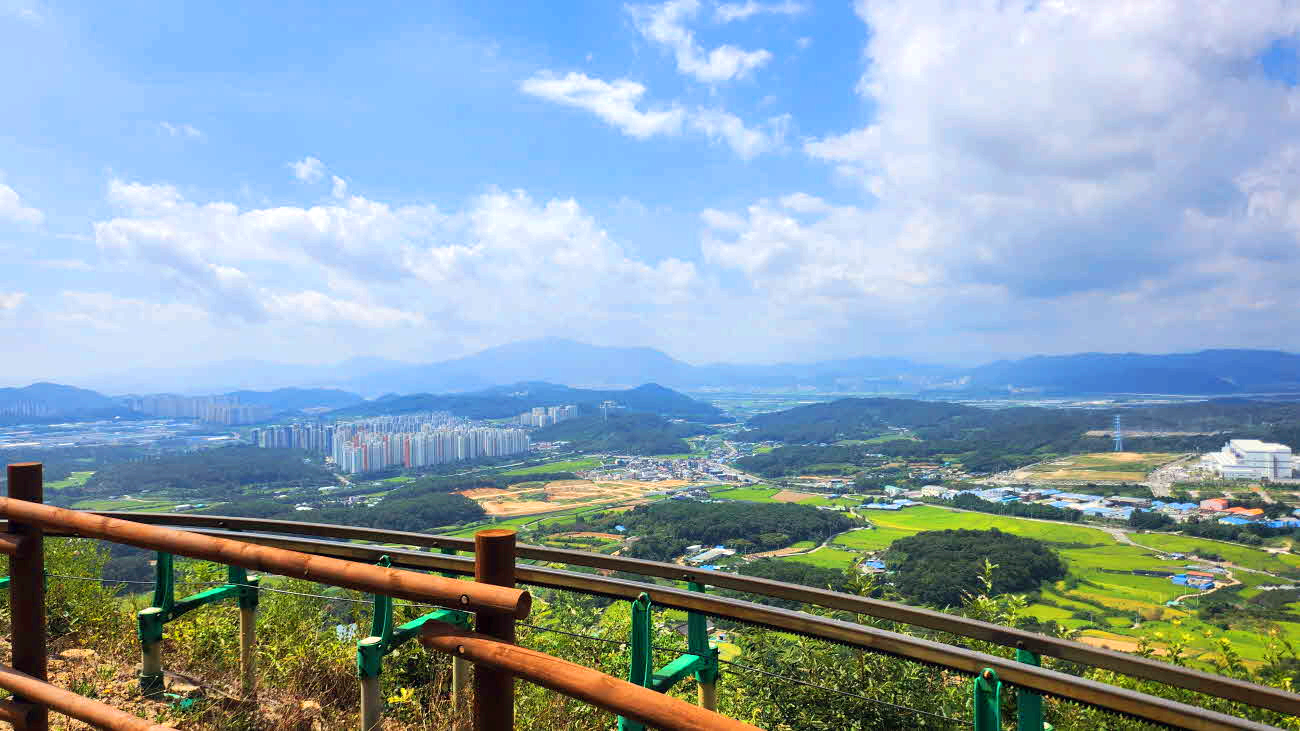 전망이트이고 우측산아래 산림문화관과 경운대학교아래 인덕저수지가 내려다보인다.
