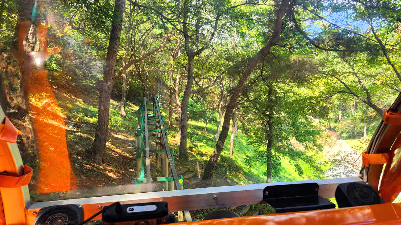 주행은 천천히 서행하면서 산허리길과 급경사코스도있어 긴장과 스릴을 느낀다.