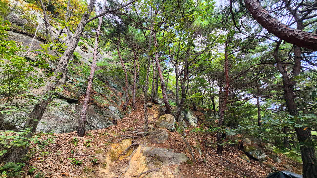 좌측 봉우리을 우회하는데 돌길사이로 오르니