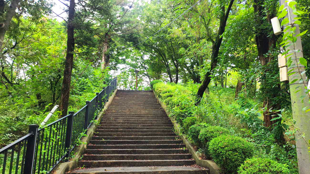 데크계단을 올라가며는 옛 전기차가 다였던 길과 만나지고