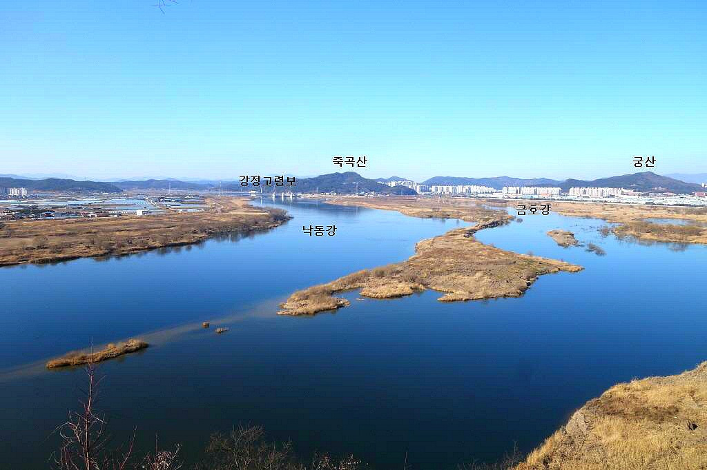끼고굽이치는 낙동강 물이 유유히 흐르고 있는 경치가 아름답기는 경상도 에서