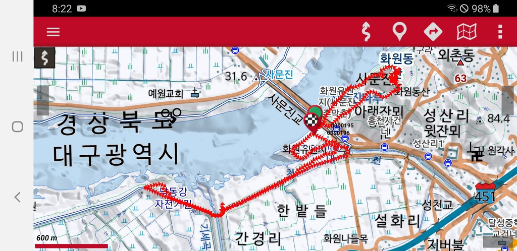 사문진 주막촌 - 화원동산주차장 - 산책로 - 언덕쉼터 - 낙동강 생태탐방로갈림길-