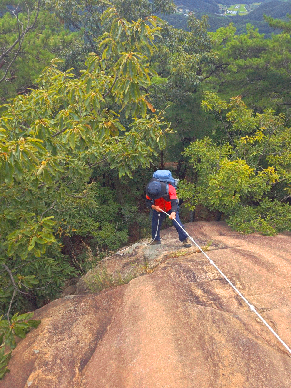 이암벽을 내려가야하는데 자일이라도있으며는 별것아닌데