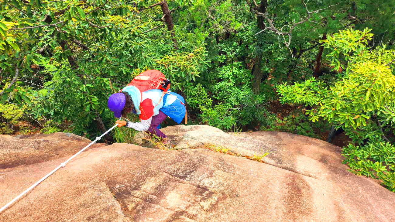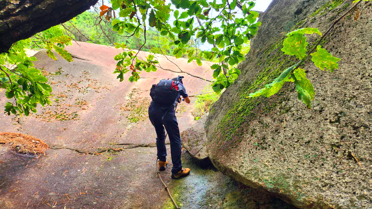 하산은 능선으로 조금만 내려가니 이런 바위벽길이 기다리고있다.