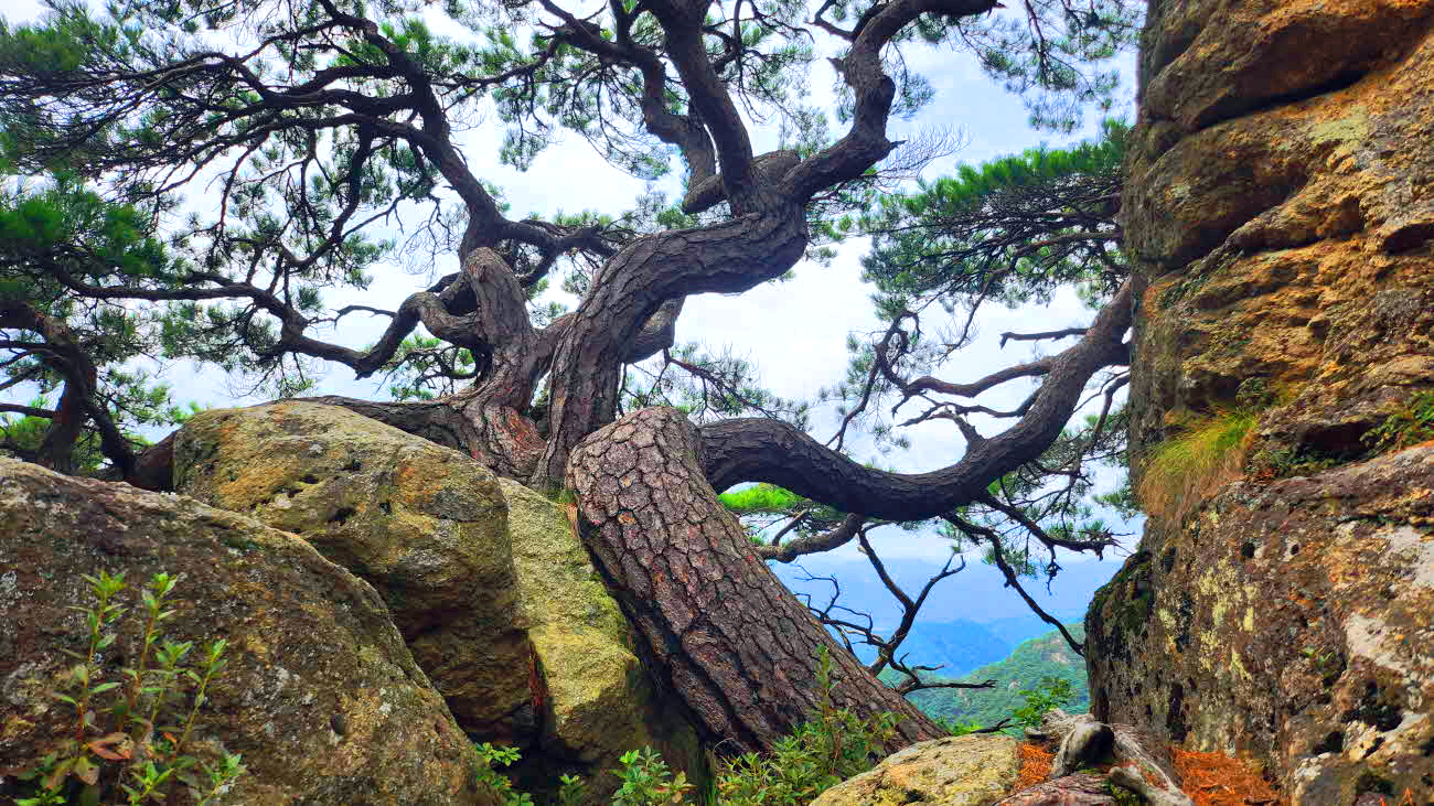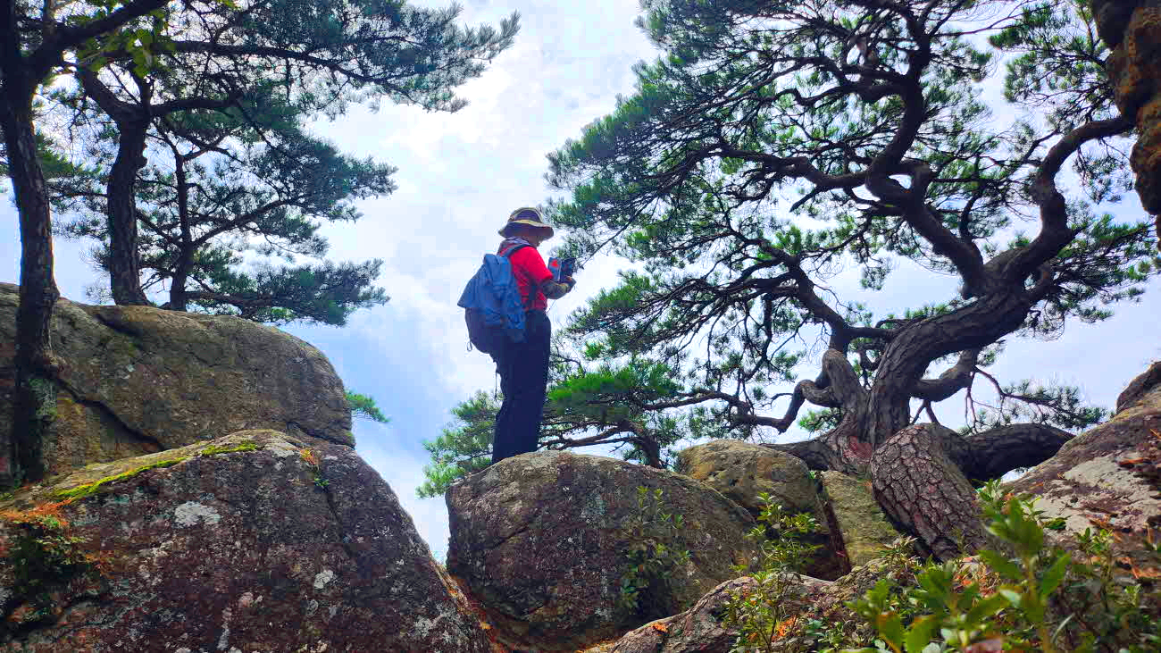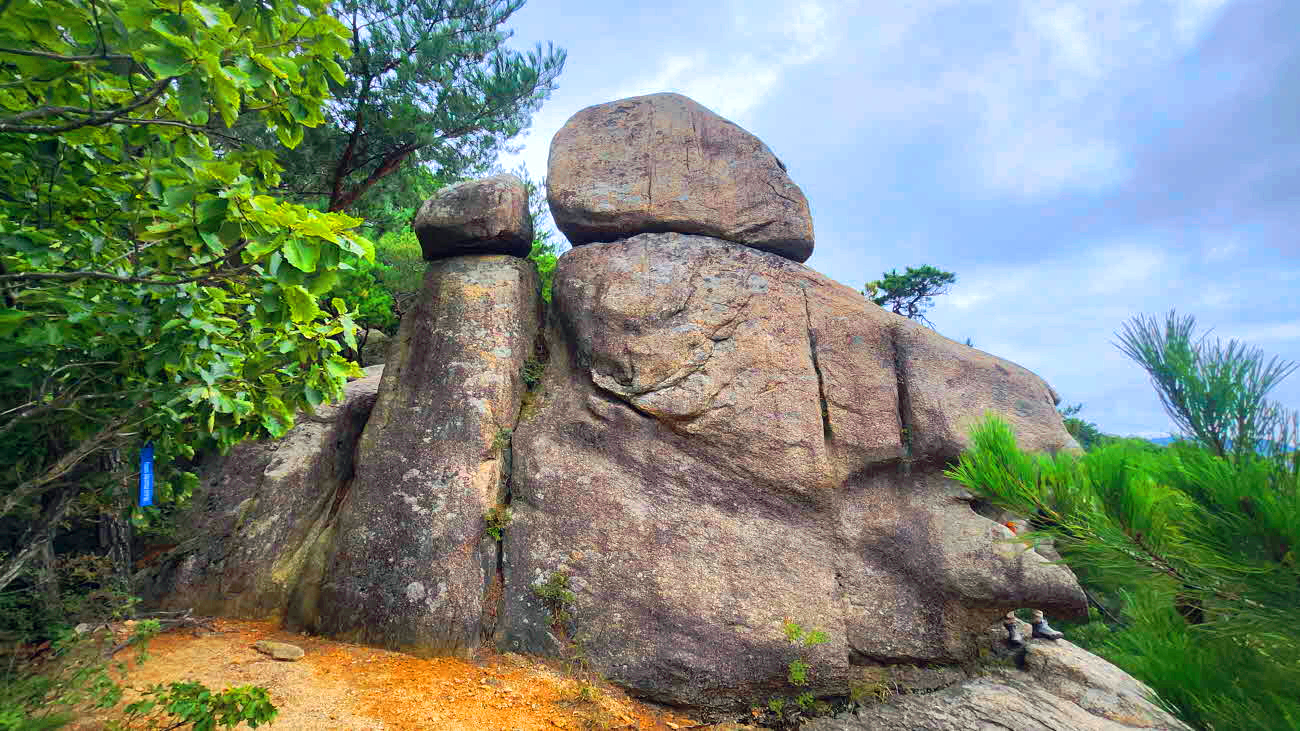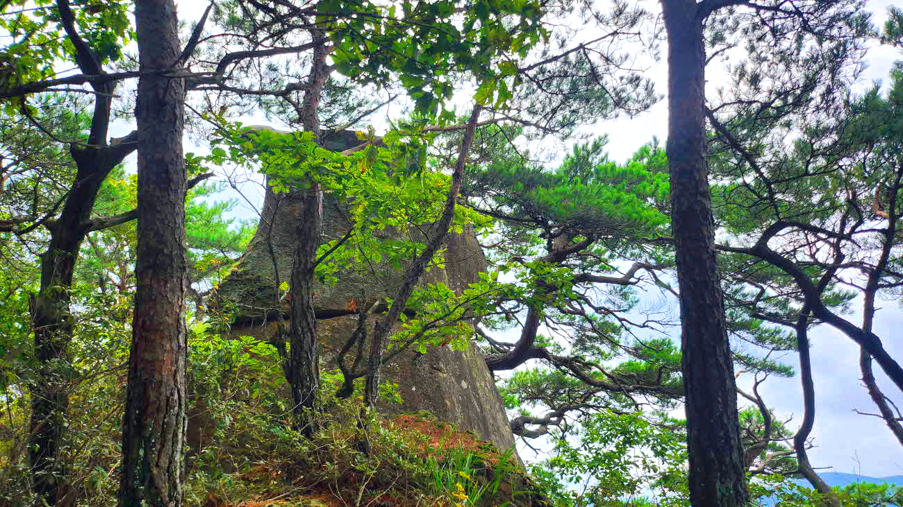 공림사의 뒷산 봉우리로 화강암 슬랩과 곳곳의 단애, 벼랑의 분제같은 소나무 와