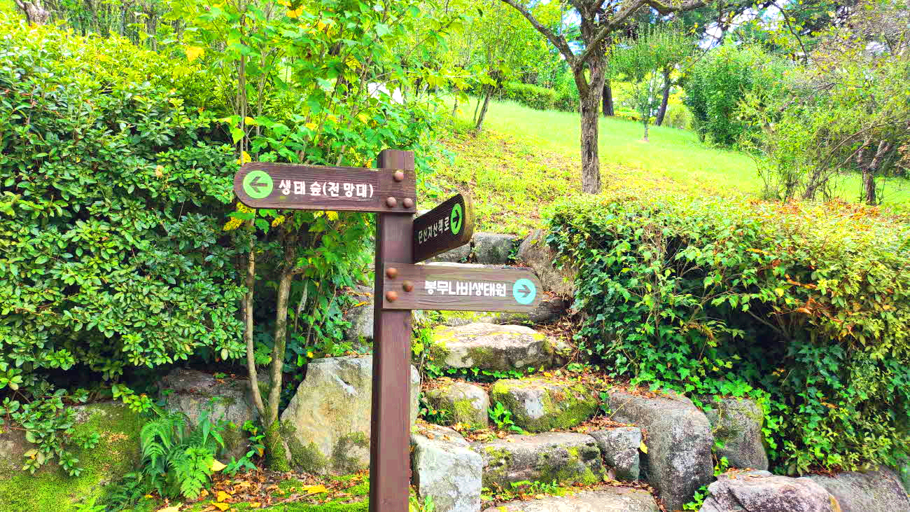 단산지 둘레길접속 - 나비사육장 - 나비누리관 - 야외 공연장 - 단산지 둑길 -