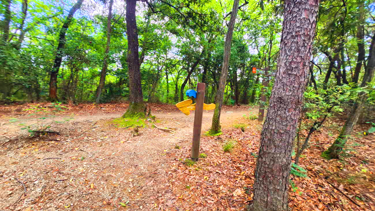 이정표와 용암산성누리길 안내판이있는 사거리