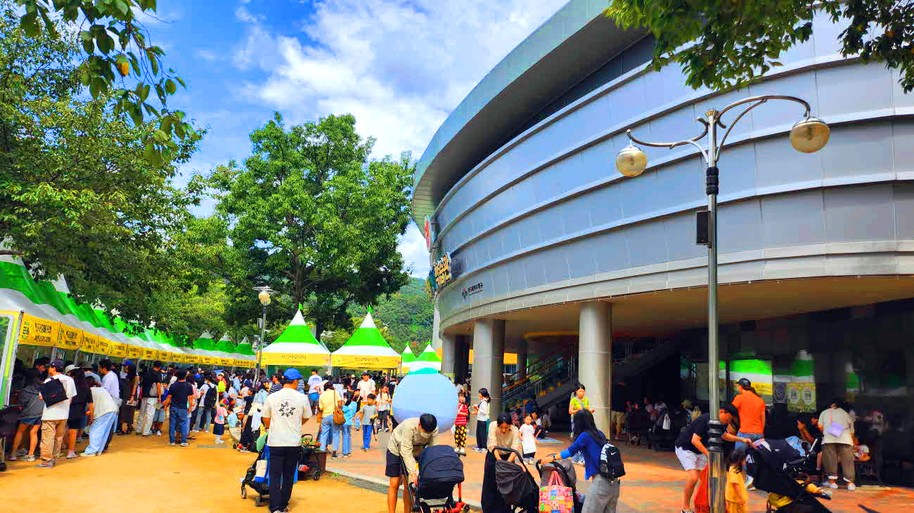 봉무공원 곤충 페스티벌 축제로 매우 혼잡하다.