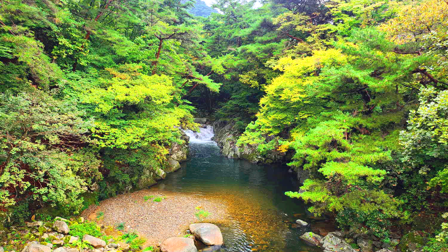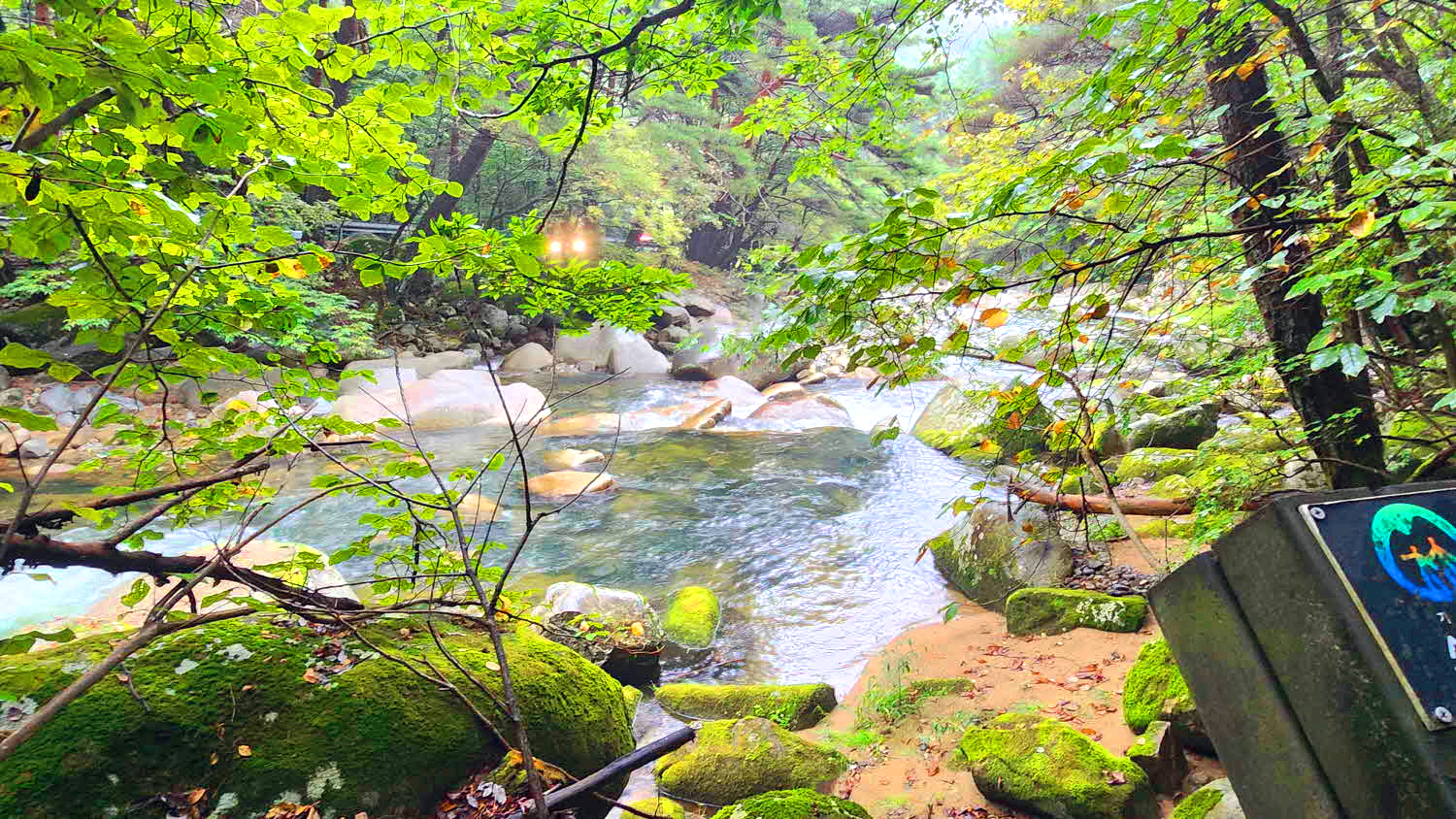 좌, 우측으로 조성되어있고 봄에는 꽃으로, 가을에는 단풍으로 계곡물을 붉게
