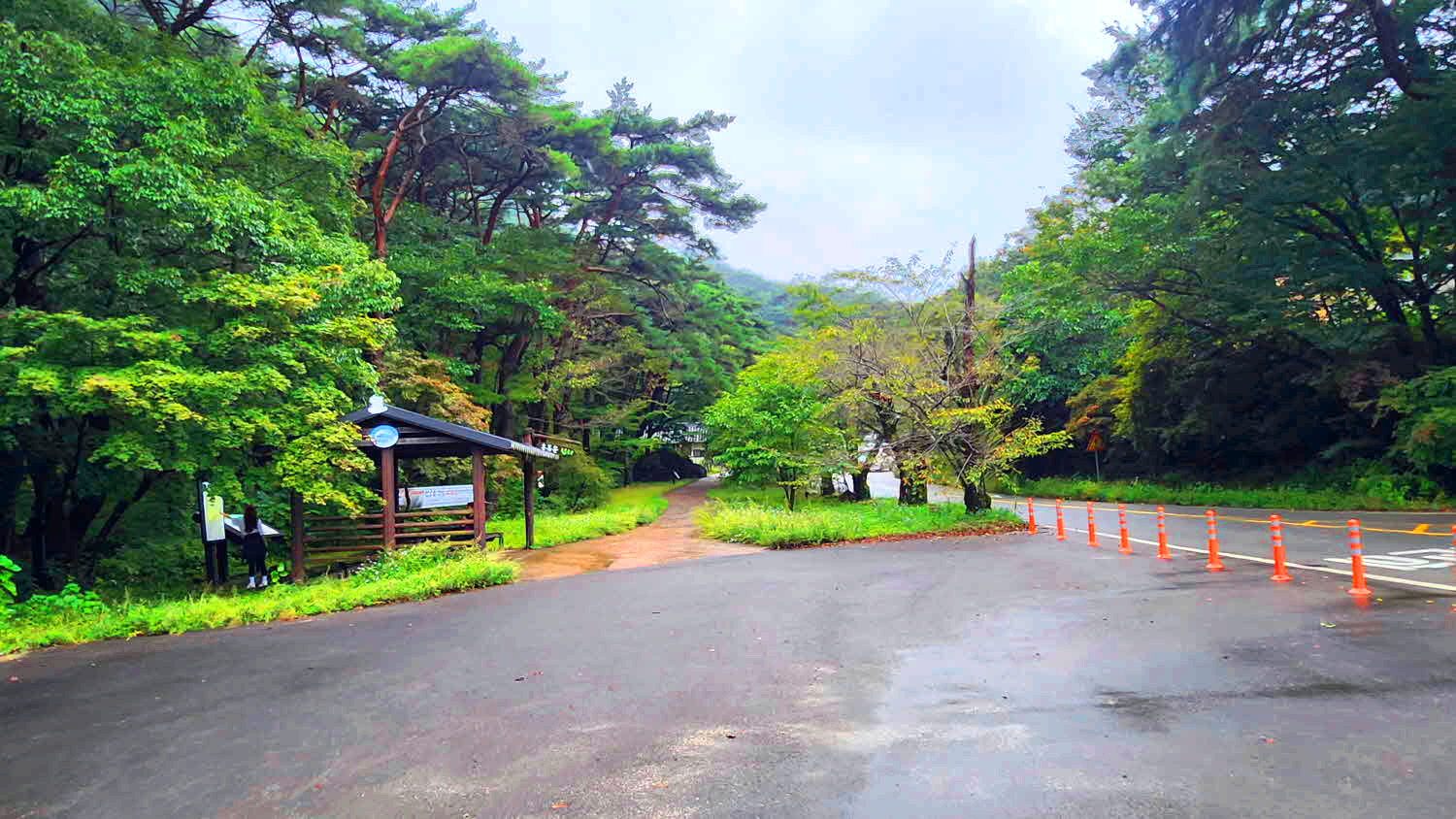 조금만 올라가며는 해인사 시설단지에도착 가야산 소리길 종점이다