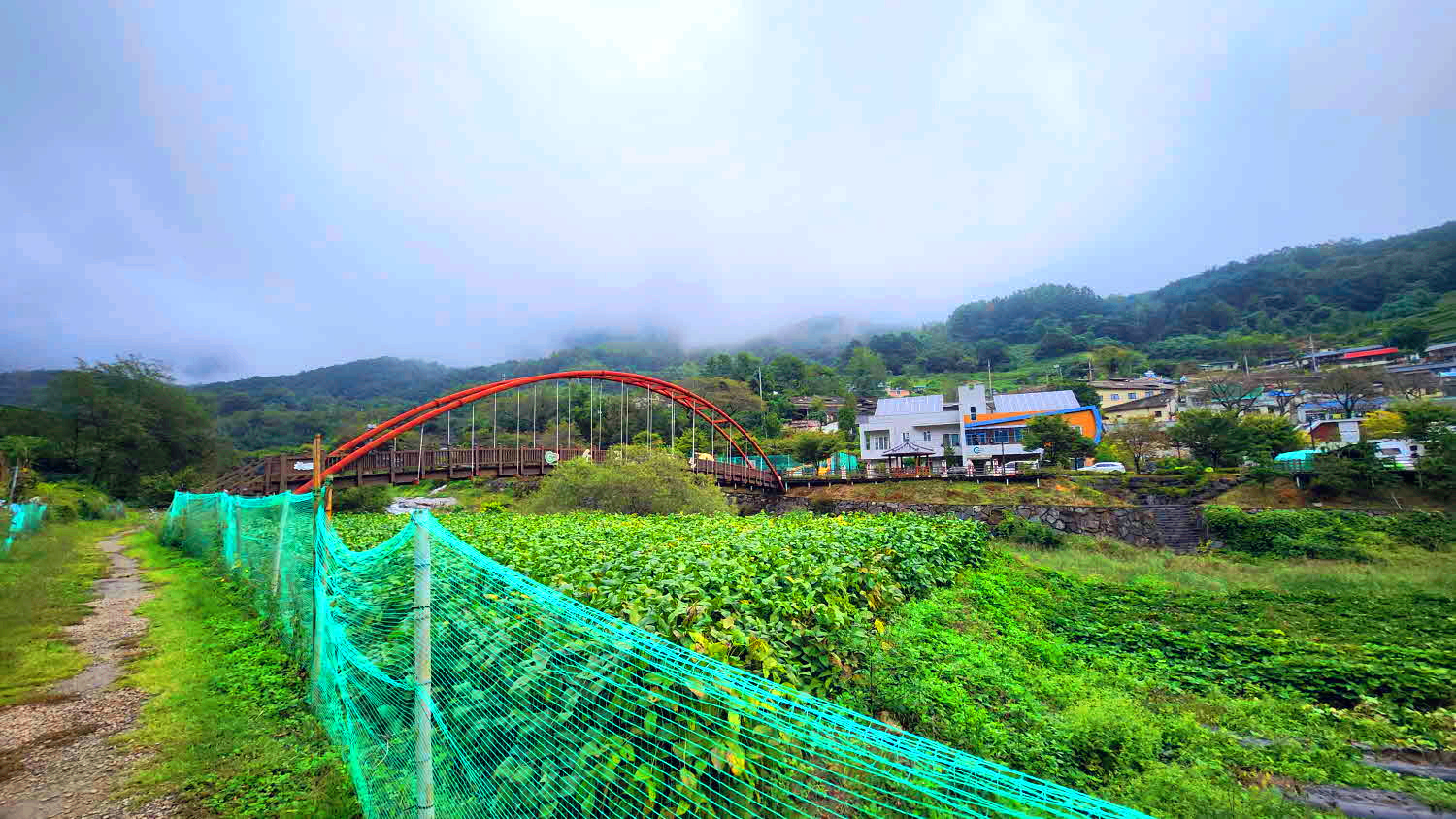 아취형 목교가 보이고