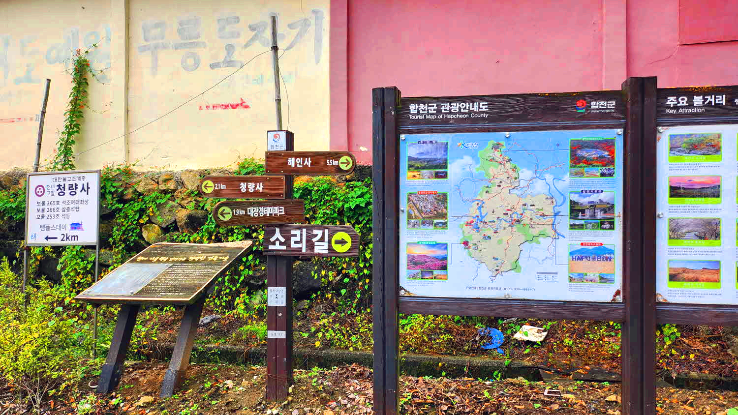네비 : 소리길 주차장 (합천군 가야면 야천리 987)
