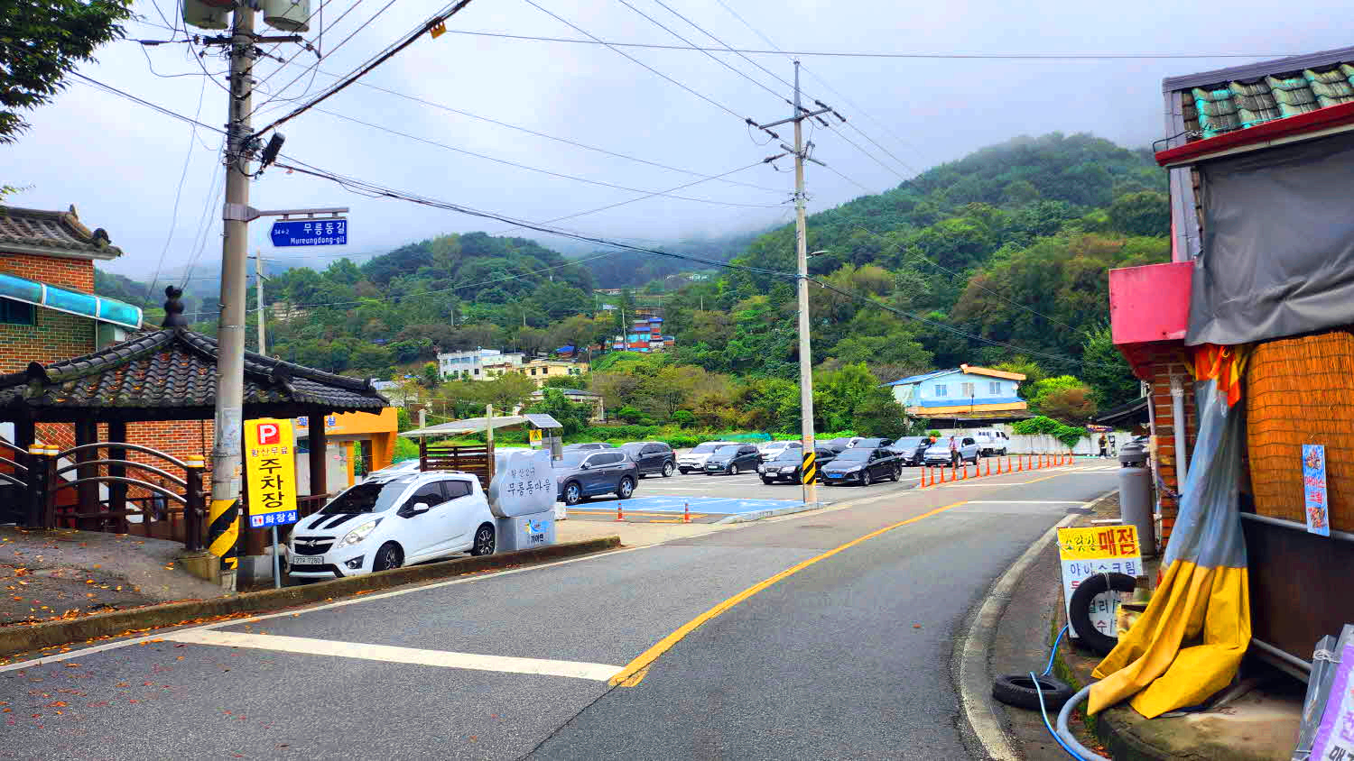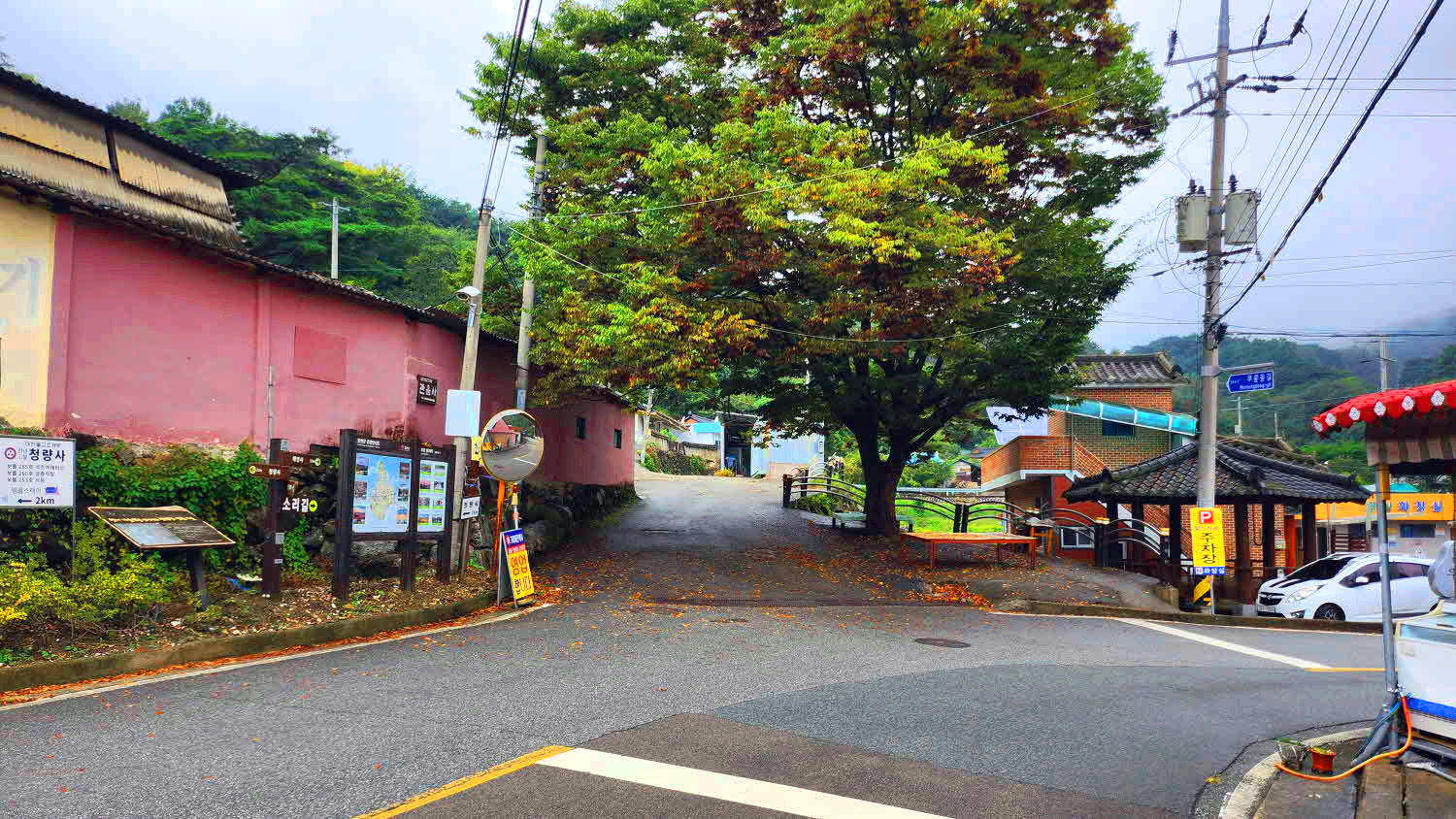 청량사로 가는 도로 삼거리