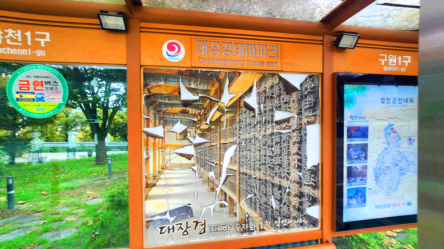 대장경 테마파크 버스 정류장에내리고