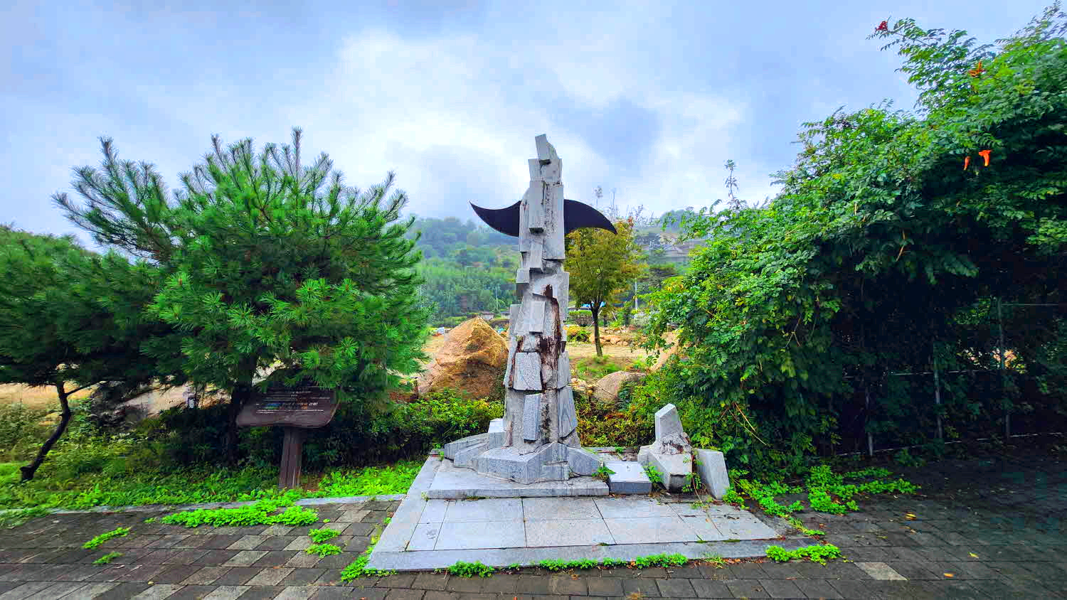 황산 1구마을 표석과 정자쉼터