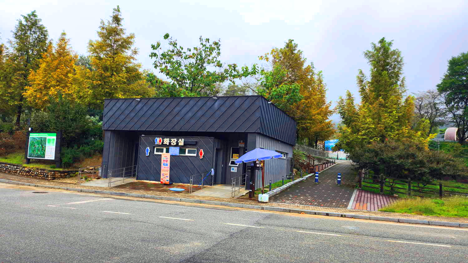 우측 화장실옆에 이정표와 등산지도가있다.
