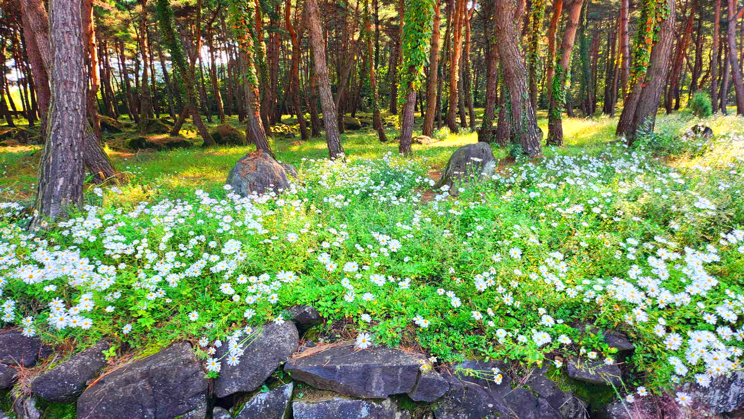 구절초 와 소나무숲