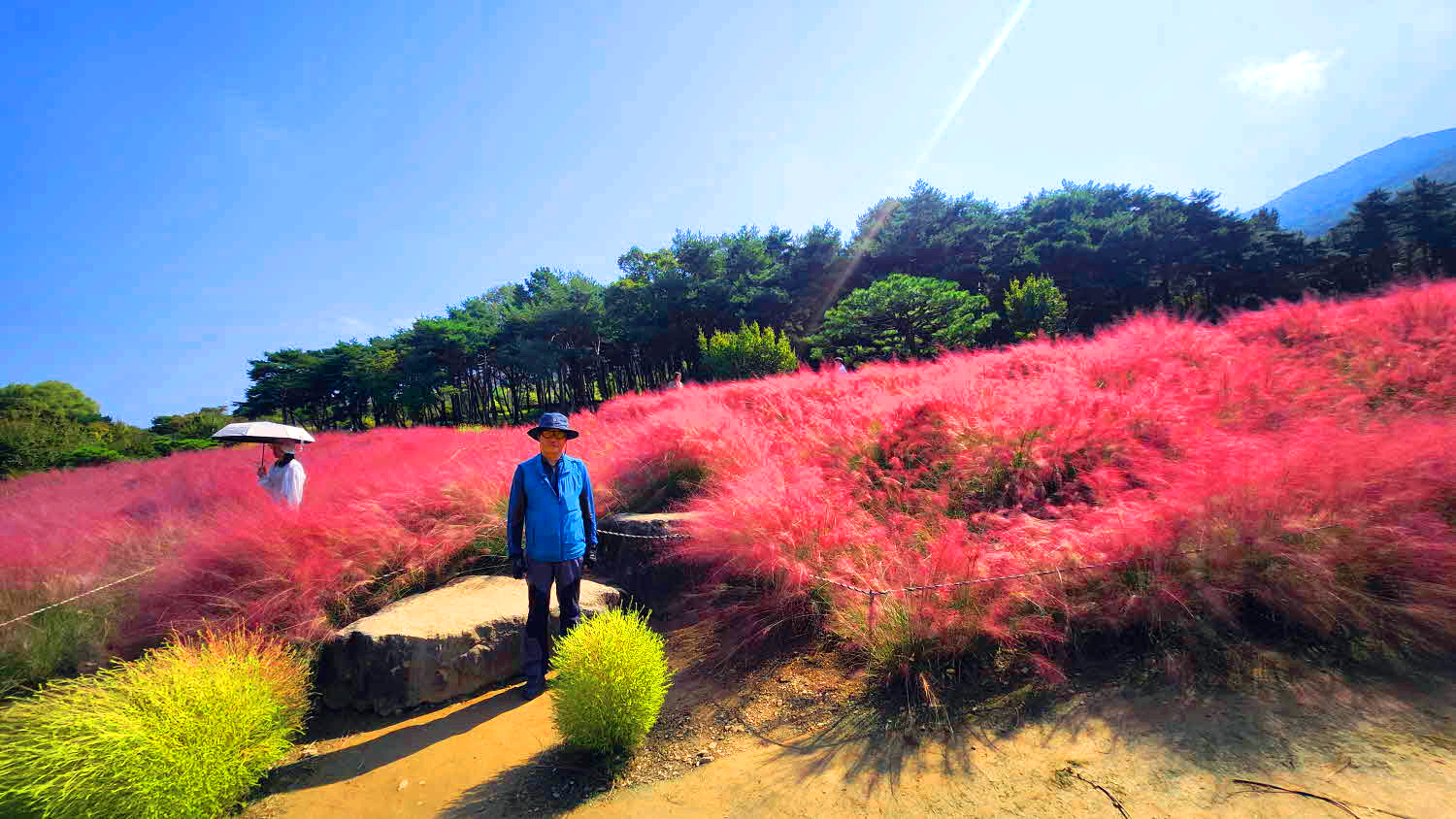 좌측에 빨간매점도지나고 핑크뮬리 정원을 만나기 전