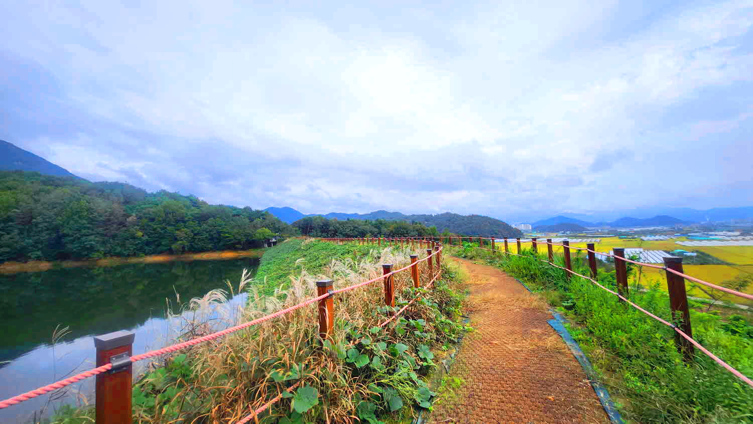 목교을 건너고 야자매트가깔린 2024년 지난해조성한 둘레길