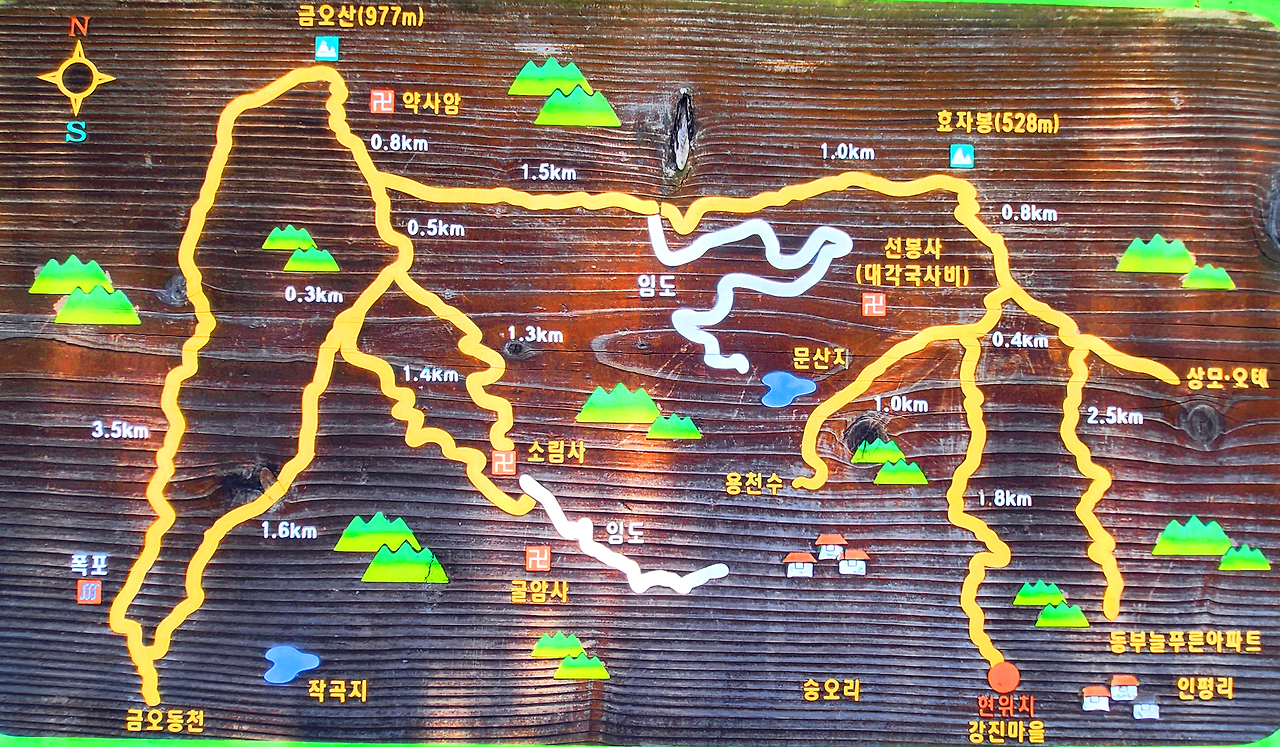 이제부터 금오사까지는 이노란표시만 따라가며는 된다.