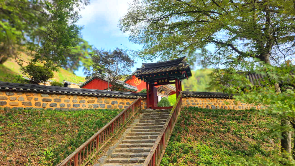 우측에 수령천년이 넘은 천년기념물 365호 은행나무