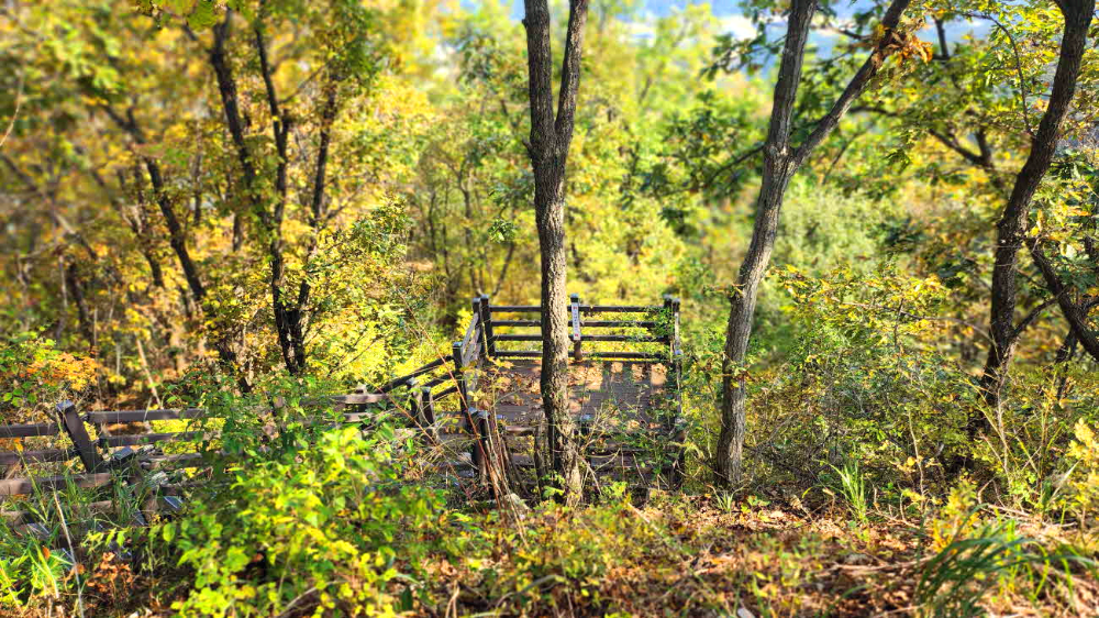 데크아래로 개삼터 하산 데크계단이 지그자그로 보이지마는