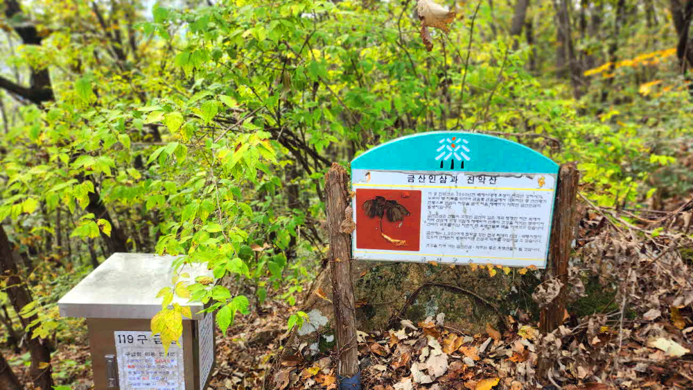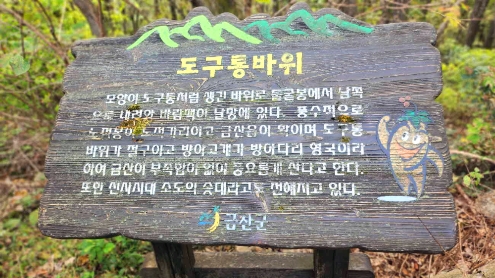 도구통바위앞에 금산인삼과 진악산 홍보 안내판