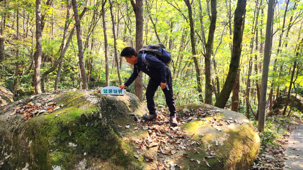 물굴봉에서 10 여분 정도 내려가면는 절구같은 도구통 바위에 도착하는데