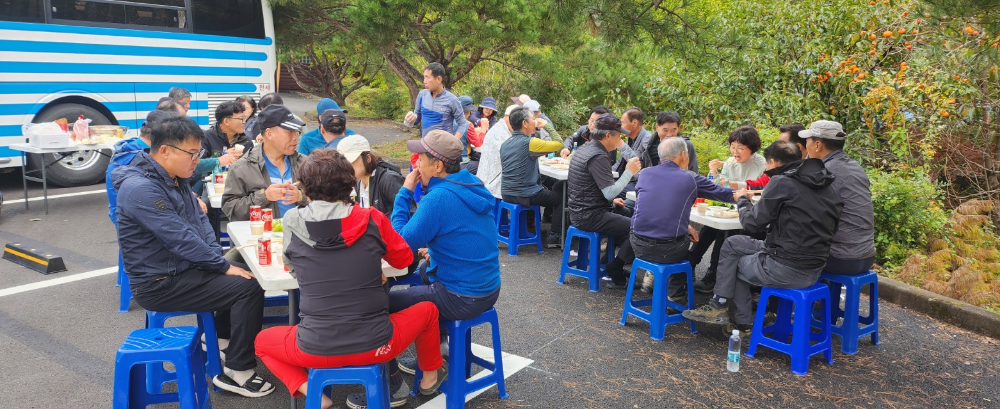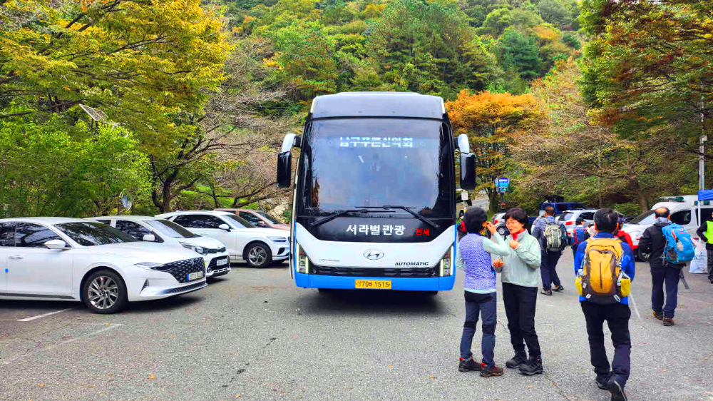 주차장에 우리버스가 보이고 하산주 준비하고있다.