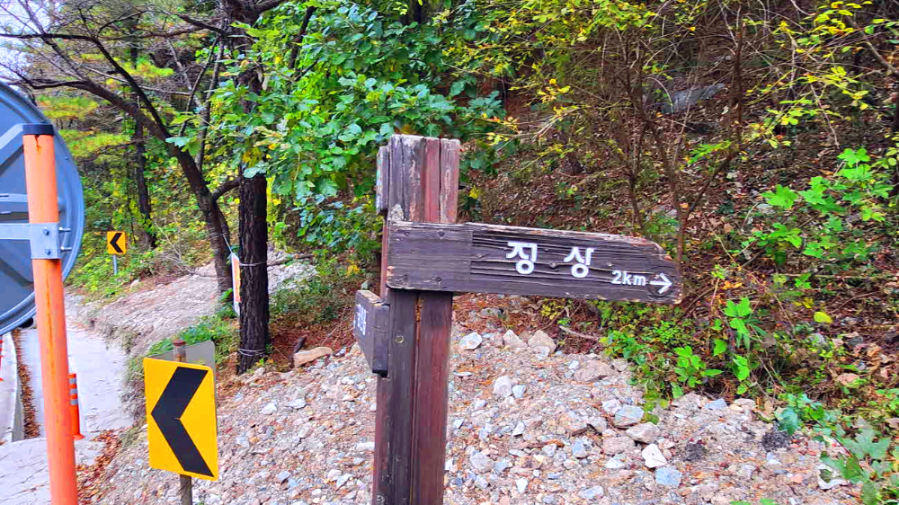 바로넘어가면는 윗이동굴 1km 우측으로는 정상 올라가는길이다.