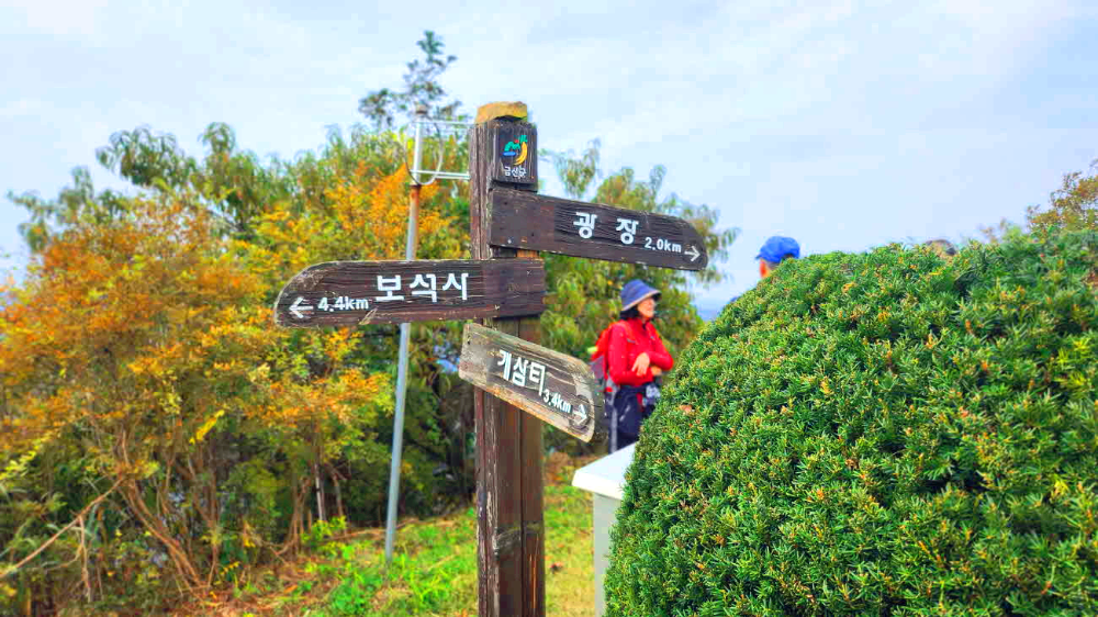 정상 300m 전 우측으로 2.1km에 원효암표시을 한다. ,