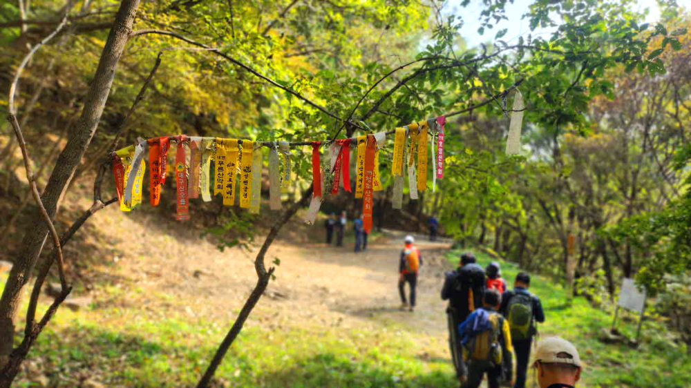 선답자들 표시기가 많이 달려있는 영천암입구에서