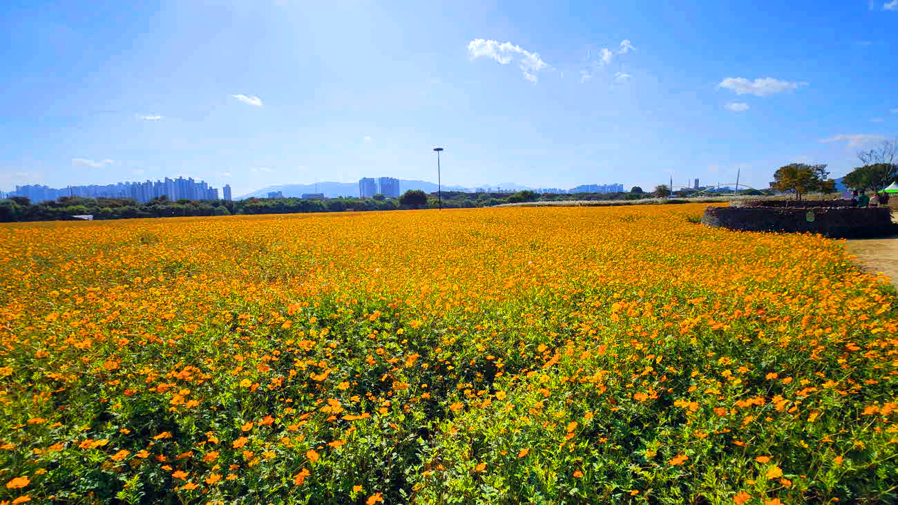 노곡교 우측 주차장 - 메인무대 - 시민정원 - 황화코스모스 - 갈대밭 -댑싸리군락지-