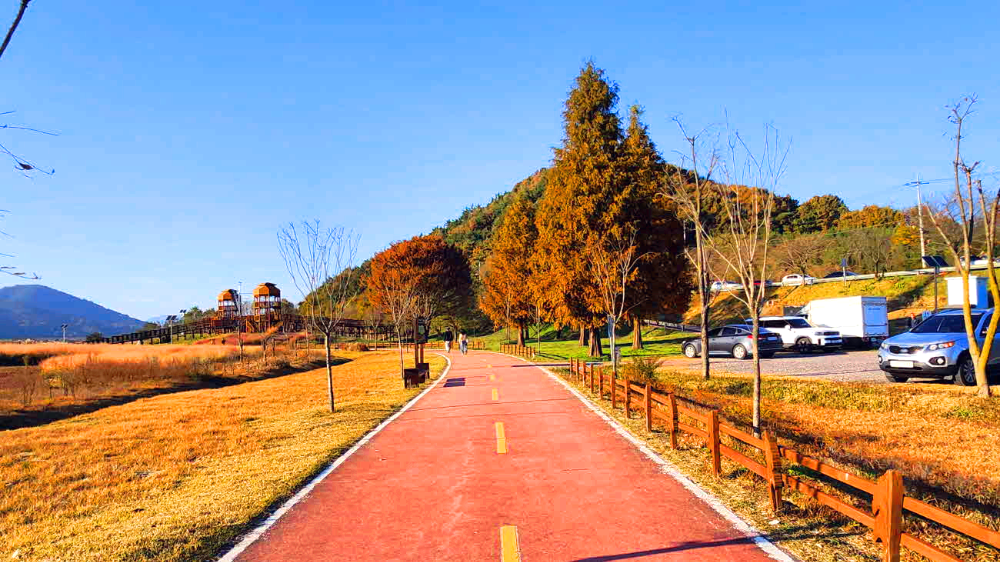 남지입구에서 둑방 방향으로 직진하여 용산리 창나루주차장
