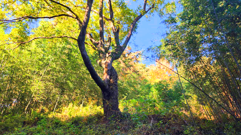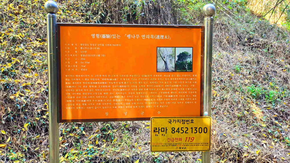 대나무 군락지 뒤 언덕에 있는 팽나무 연리목
