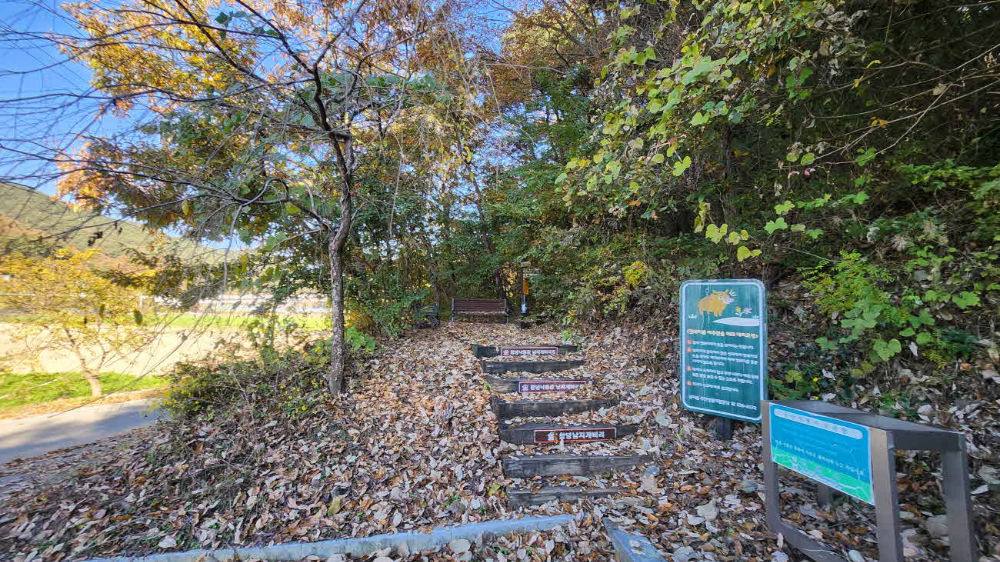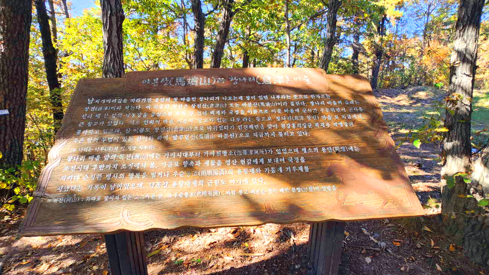 계단을 올라서 마분산과 창나리 마을에 관한 안내판이있는곳