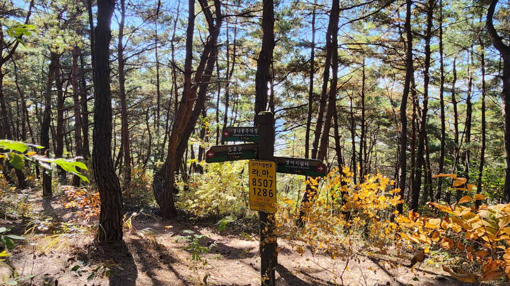 마분산 바로아래 우회 갈림길 양어지마을로가는 우회로이다.