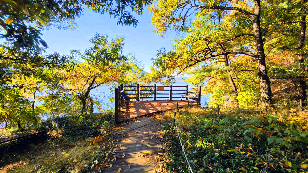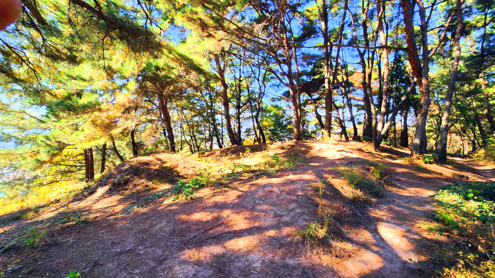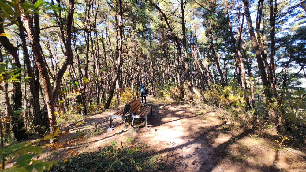 산책로는 영아지 쉼터 뒤로 산길을 택해 영아지전망대로오른다.