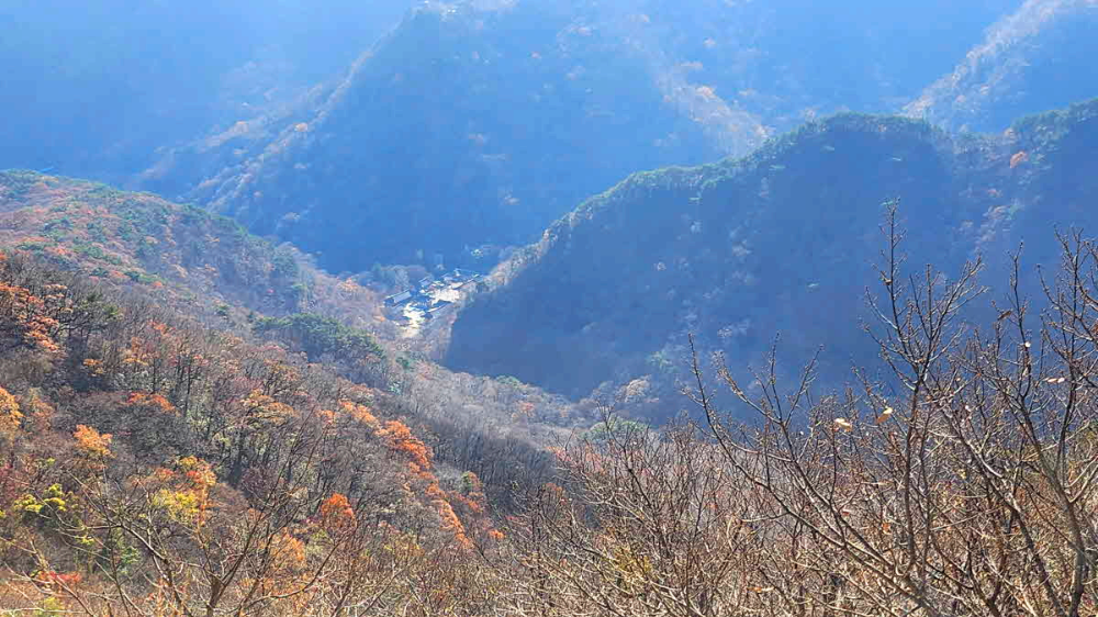 도로변에 남아있는 단풍을보면서 걸어서내려간다.